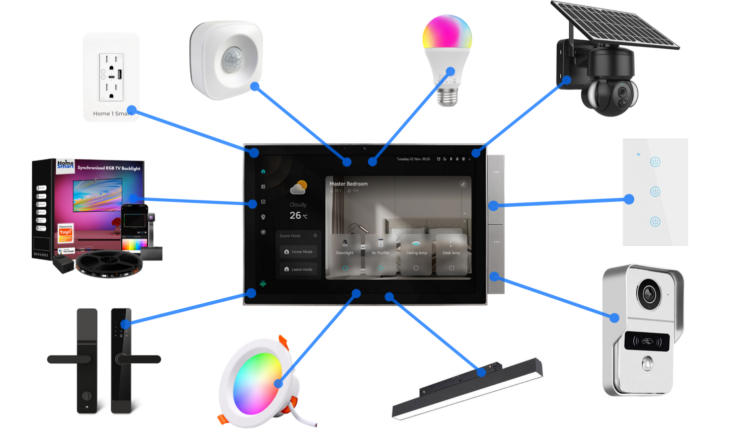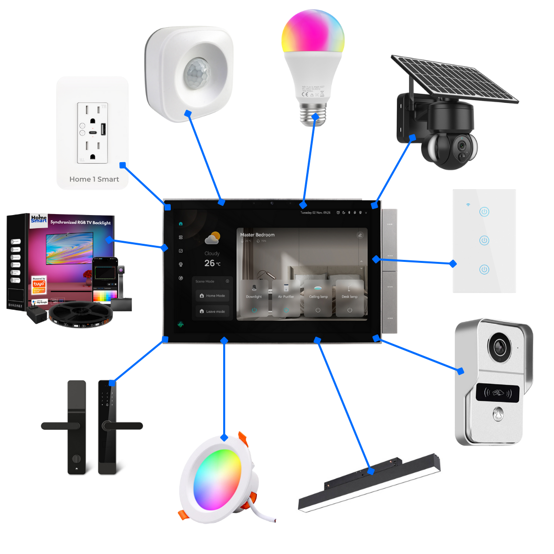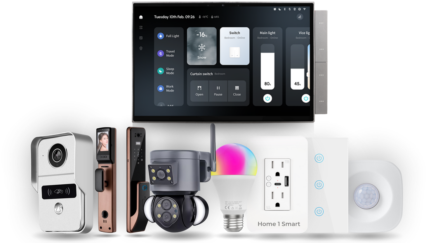 HomeOne Smart devices connect seamlessly — panels, lighting, security, and automation working together through one app, one touch, one experience.