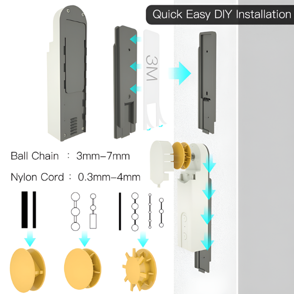 Mounts easily with 3M adhesive and fits ball chains (3–7mm) or nylon cords (0.3–4mm) — no tools, no wiring, just plug and go.