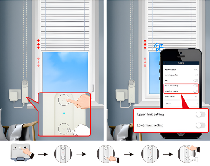 Set precise upper and lower stop points directly from the Tuya App or on the motor for smooth, customized blind movement.